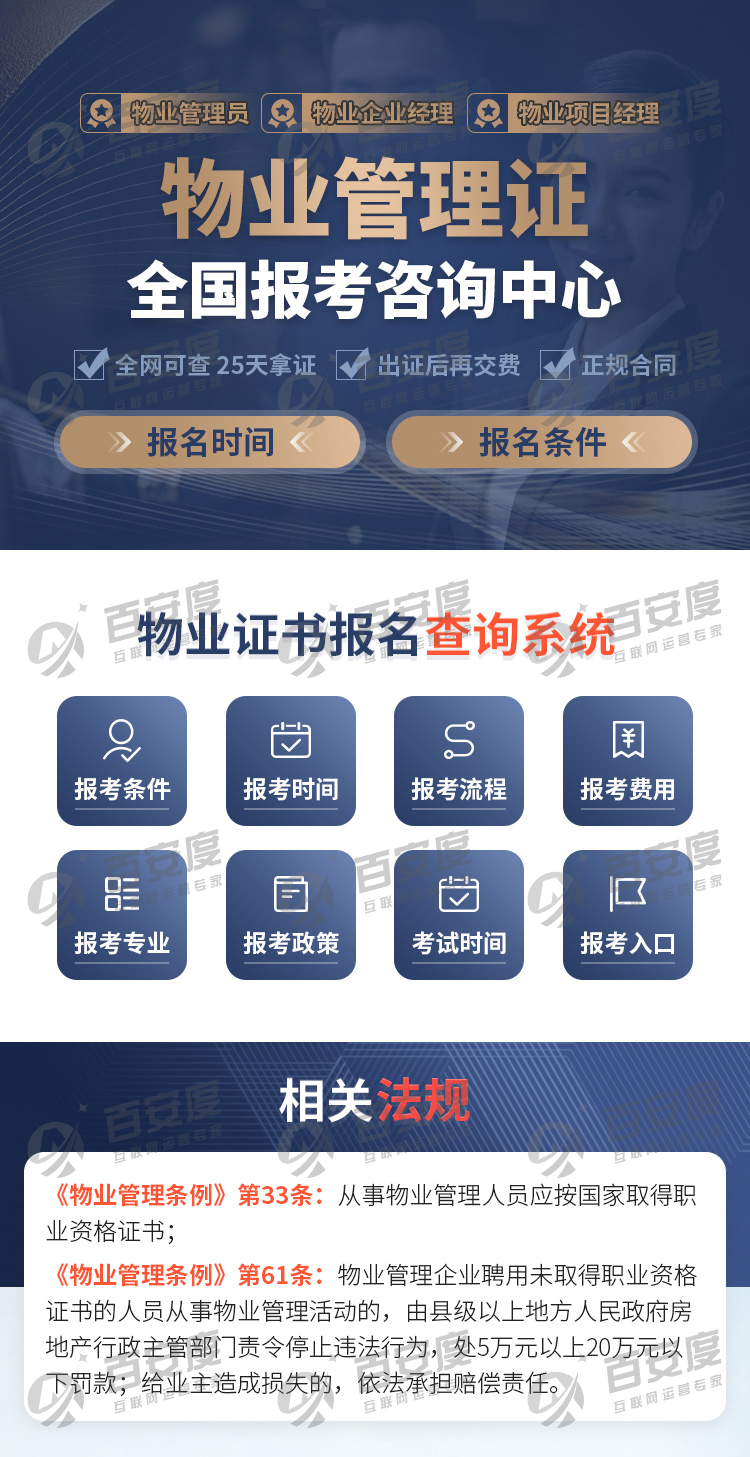 物业管理作为新兴服务行业在我国迅速发展,新建物业管理公司不断崛起。2007年6月19日颁发,2007年修订的《物业管理条例》第33条规定“从事物业管理的人员应当按照国家有关规定,取得职业资格证书”。