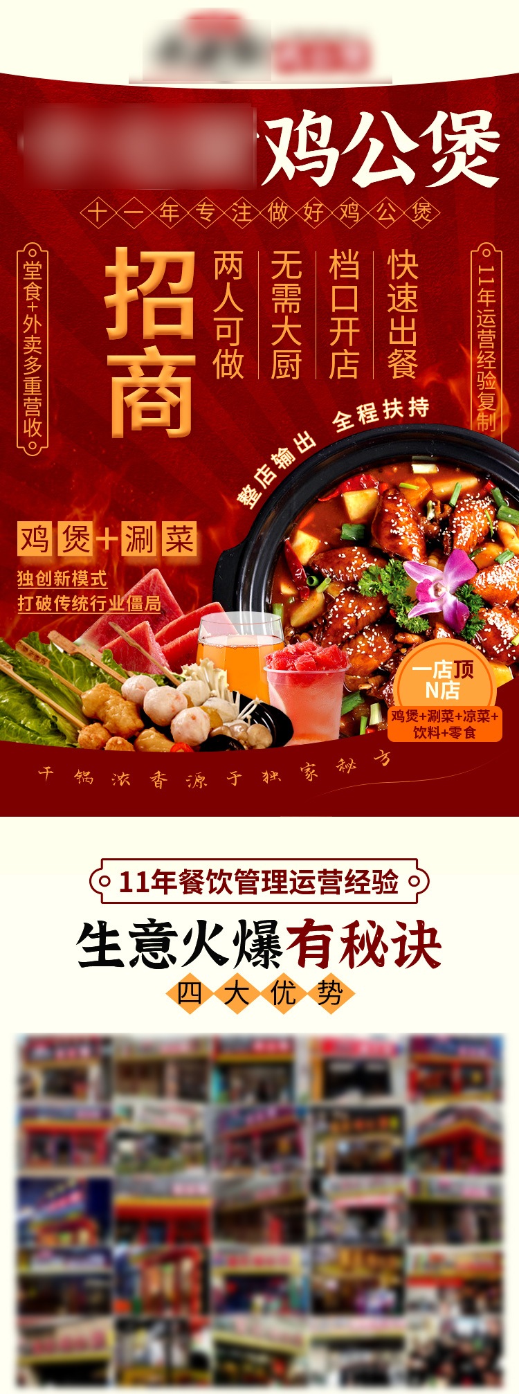 客户品牌以鸡公煲作为店面的招牌产品,通过搭配精致凉菜,特色小吃,冷热饮品,形成一个全季节,全经营种类的特色餐饮店。通过足够的产品种类及单品的利润保障,为店面实际经营给予很大经营保障。