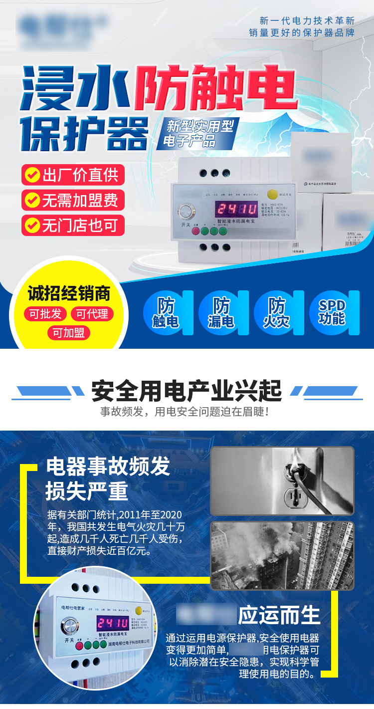 触电保护器是减轻触电对人体产生伤害的一种装置。又称漏电保护器。“浸水不漏电,触电不伤人”的防触电保护器,能在水中带电作业而不会发生触电,只要在线路前端安装了该安全电用装置后,就可以做到把普通插线板浸泡在水里,不但漏电保护器不跳闸,还可以在水里正常点亮灯泡,而且人碰触水也不会发生人体触电现象,其它用电设备,如电吹风、电机等浸泡在水中都可以正常运转